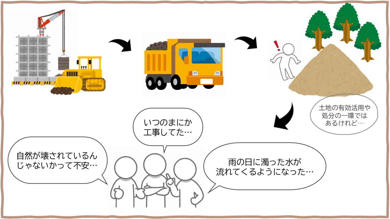 建設工事などで発生する残土(土砂)の不適正な埋立てや盛土による災害や土壌汚染を防ぐために、地方自治体が制定する条例です。
